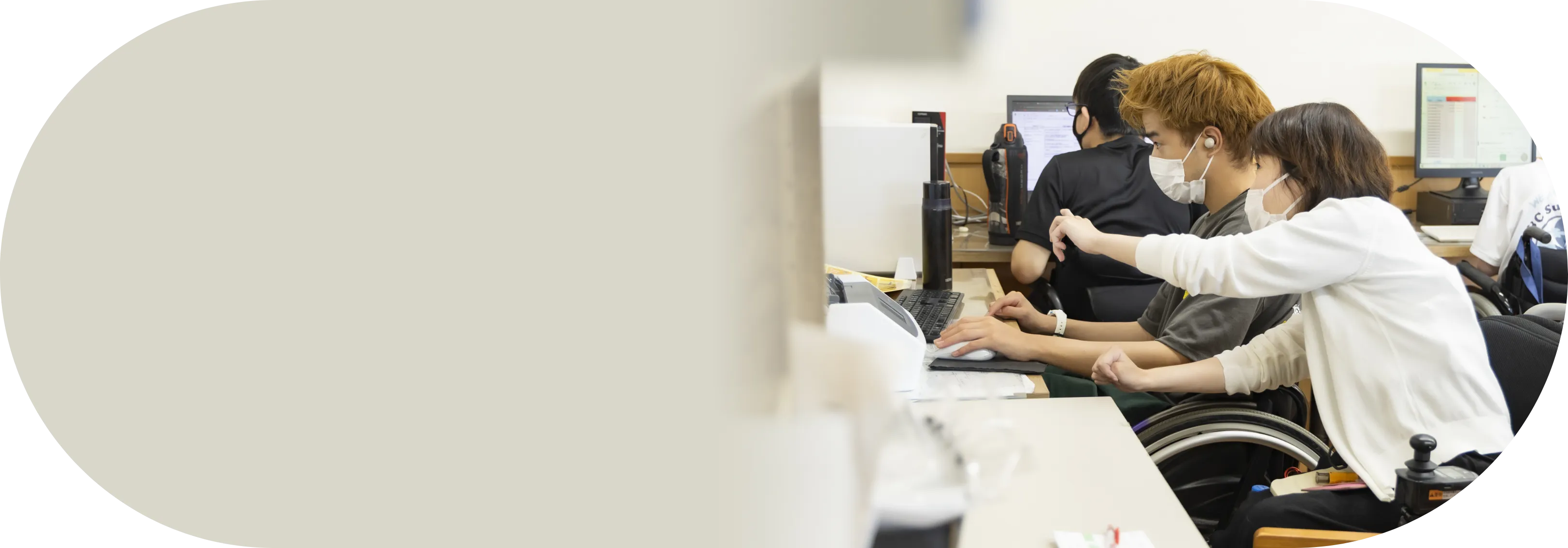 義肢・装具・車いすの利用者さんとの関わりから生まれた、障害のある方の就労をトータルで支援する多機能型の事業所です。福祉・介護の経験豊富な熟練スタッフが在籍し、利用者一人ひとりの特性や悩みに寄り添ったサポートを行っています。