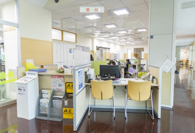 まずはエントランスロビー右手の受付にお越しください。はじめての方でも安心して利用できるようご案内いたします。