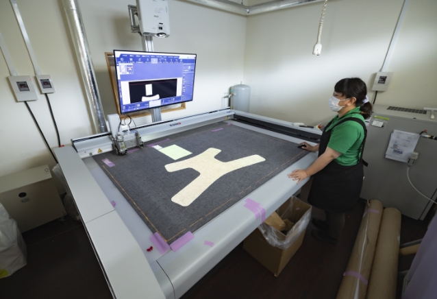 布や皮、薄いプラスチックなどを裁断するデジタルカッター。切り口にほつれなどができにくく、短時間で多くの材料の切り出しが可能です。
