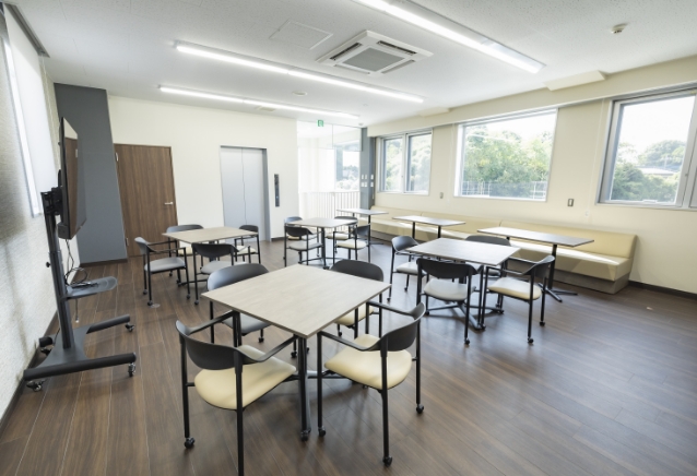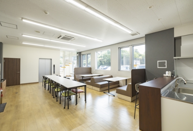 2024年8月に、より利用しやすくリニューアルした社員用の休憩室。キッチンやレンジ、オフィススマートショップを備えています。