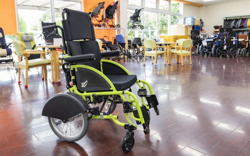 小児用車いす、成人用車いすなど、使用者の体の状況、体格等に応じてさまざまな車いすを提案しています。敷地内には試乗や練習のできる屋外コースもあります。また、日々を車いすや座位保持装置で暮らす方にとってシーティングはとても重要です。姿勢や座り心地が気になる方は、ぜひ一度ご相談ください。